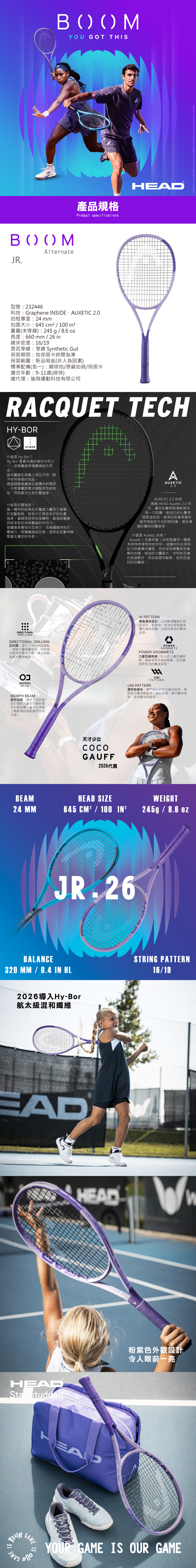 HEAD Boom Jr. Alternate 2026 26in 青少年網球拍 232446