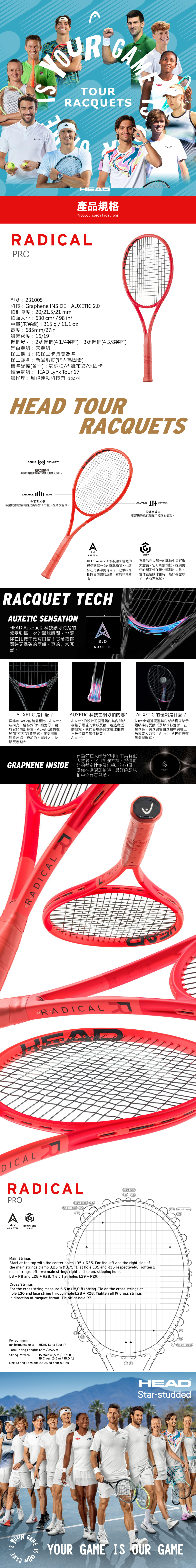 HEAD RADICAL PRO 2025 選手網球拍 231005