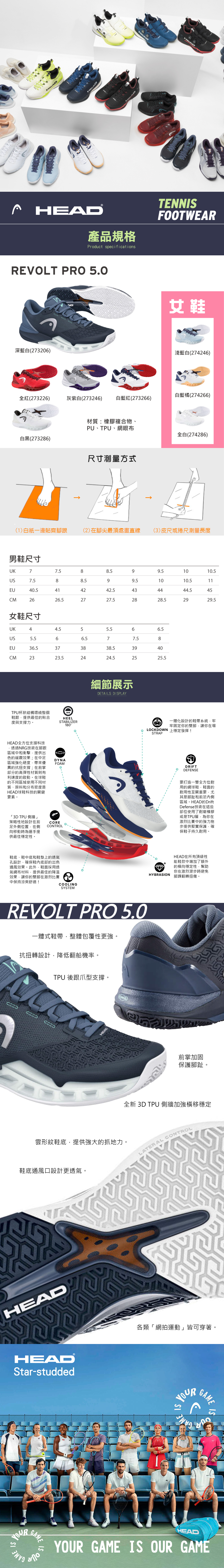 HEAD Revolt Pro 5.0 Men 全場地網球鞋 男鞋 深藍白 273206