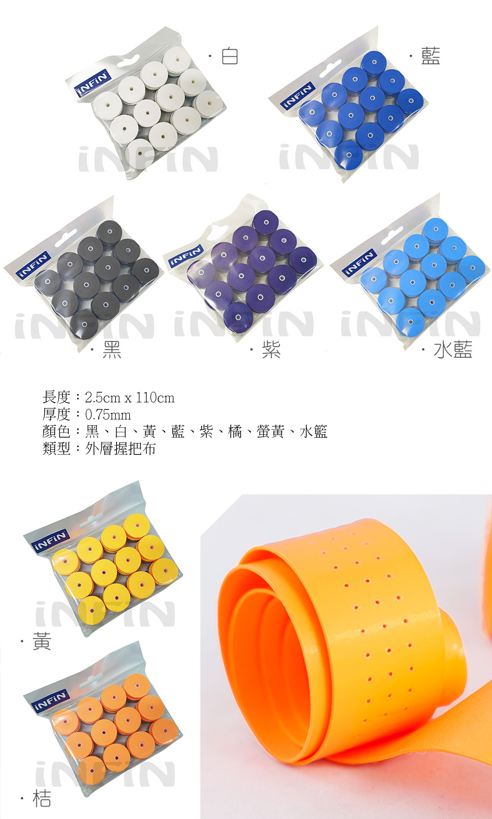 透氣孔設計提供優良透氣性,黏度佳,提升握力,降低球拍脫落的風險。