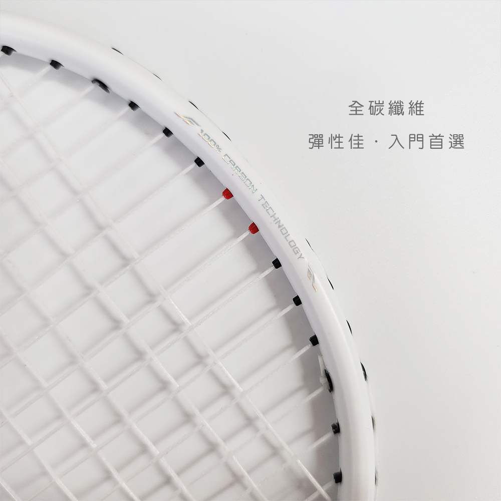 這款全碳纖維羽毛球拍專為新手與進階玩家打造,適合攻擊型打法,助您在比賽中掌握強大力量與精準控制。球拍整體輕量化設計,加上穩定的平衡點,讓每一次揮拍都充滿爆發力與流暢感。