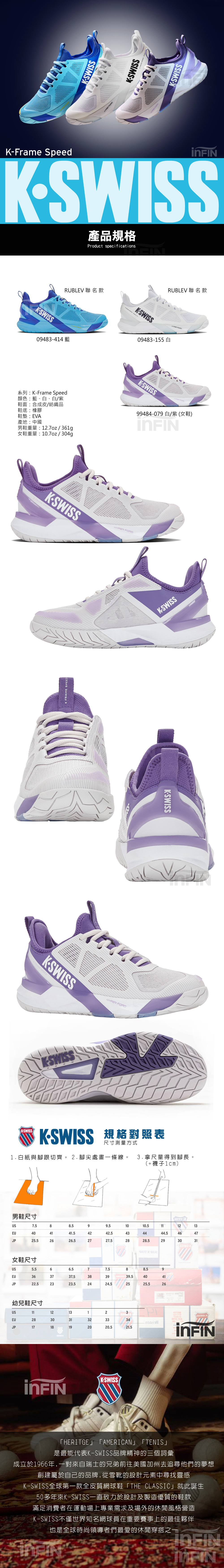 K-SWISS K-Frame Speed 進階網球鞋 女鞋 99484-079 白/紫