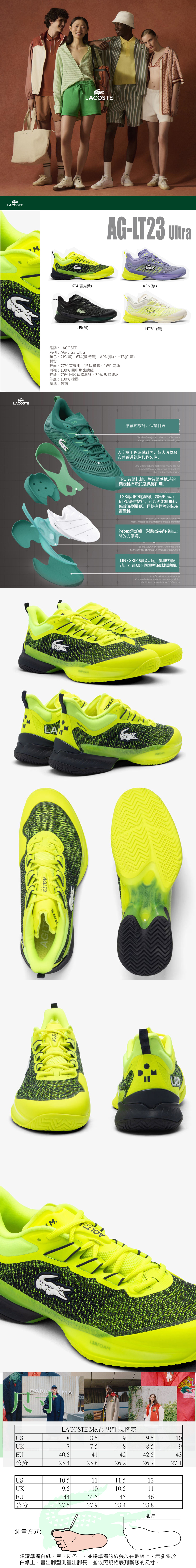 LACOSTE Men's AG-LT23 Ultra X Daniil Medvedev Tennis Shoes 網球鞋/運動鞋/男鞋 6T4(螢光黃)